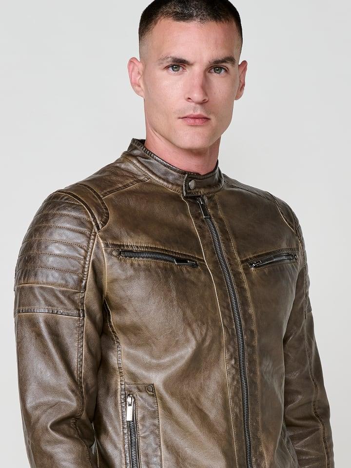Мужская куртка. Высокий воротник. Застежка на молнию спереди. Карманы. Состав: 100% хлопок, покрытие: 100% полиуретан.