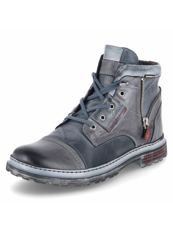 Мужские ботильоны Krisbut на шнуровке из серой гладкой кожи с эффектом потертости сочетают в себе функциональность и стиль. Теплая текстильная подкладка обеспечивает приятное тепло в холодные дни, а усиленные носок и пятка обеспечивают дополнительную защиту и устойчивость. Шнурки и молния позволяют легко надевать и снимать ботинки.