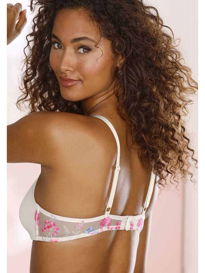 Красивый бюстгальтер без косточек с нежным бантиком по центру спереди. Бесшовные, предварительно сформированные, слегка уплотненные чашки. Крылышки из мягкой сетки с красивым цветочным узором из вышитого кружева. Бретельки регулируются индивидуально и застежка на спине. Создано с любовью и страстью в Гамбурге.