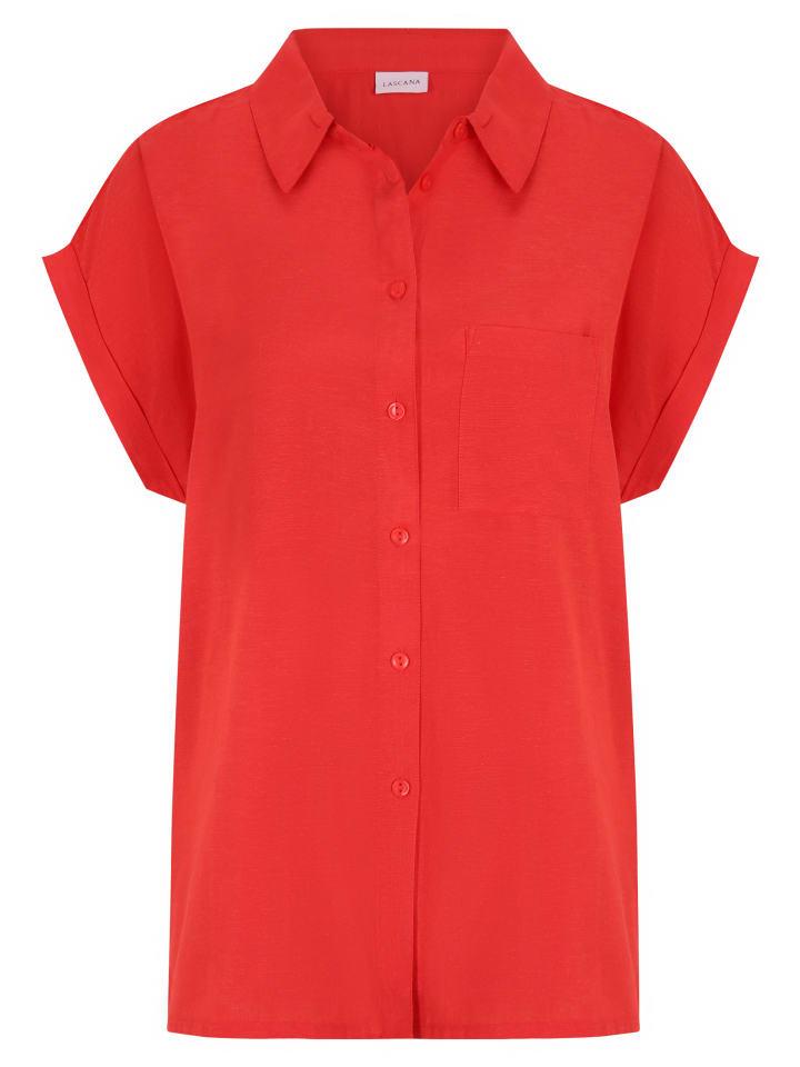 Блузка-рубашка от LASCANA с нагрудным карманом, застежкой на пуговицы по всей длине и короткими разрезами по бокам. Короткие рукава с фиксированными отворотами. Длина около 68 см. Состав: 58% вискозы, 28% хлопка, 14% льна.