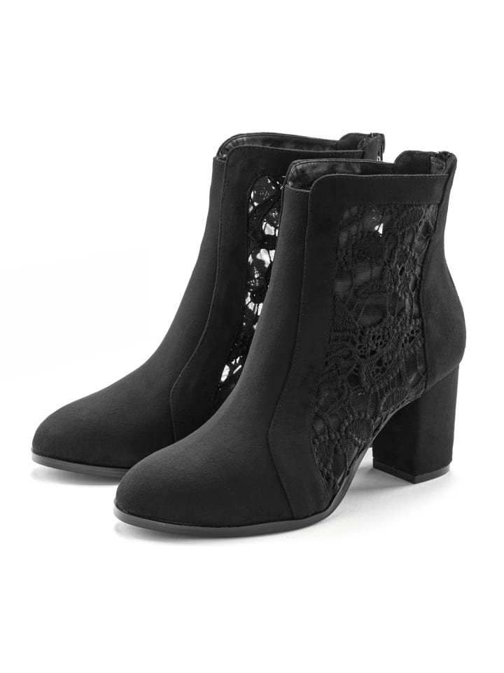 Легкие ботильоны от Lascana. Отличительные особенности: модное кружево и удобный блочный каблук. Женственный стиль, идеально подходит к джинсам, шортам и платьям.