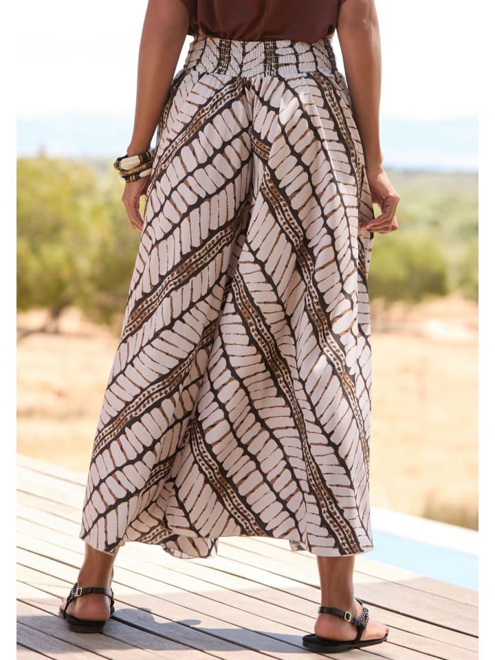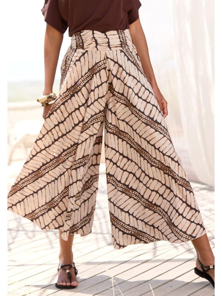 Летние брюки-кюлоты от Lascana. Очень широкие брюки юбки-кроя и широкие присборенные манжеты. Сплошной принт, каждое изделие уникально. Идеально сочетается с бикини или бандо. Свободный крой, немнущийся материал.