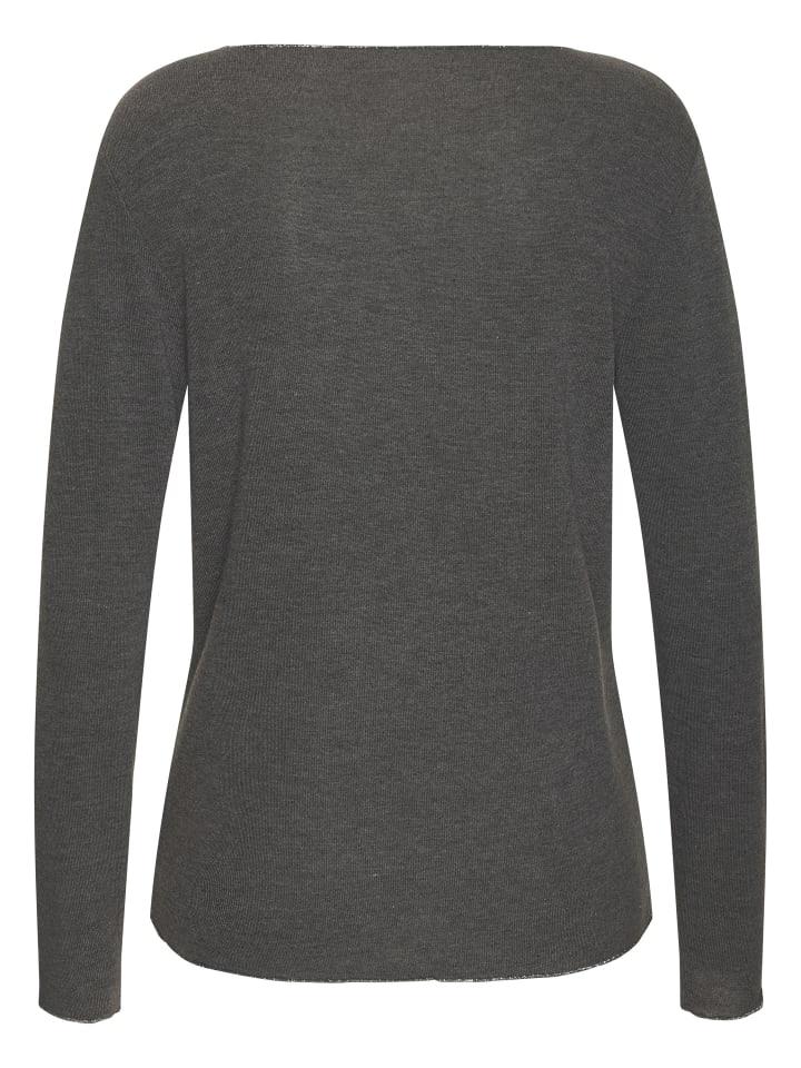 Однотонная рубашка с длинными рукавами от Lascana с тонкой блестящей окантовкой на круглом вырезе, подоле и манжетах рукавов. Свободный крой. Легко комбинируется. Мягкая ткань из смеси вискозы.