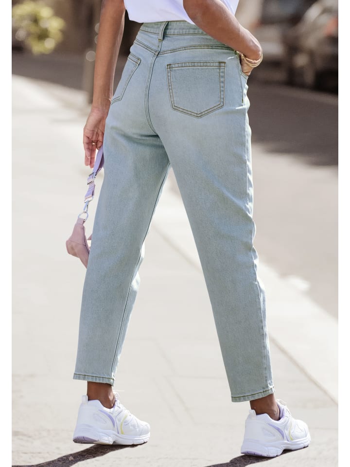 Джинсы Mom от Lascana. Высокая талия. Прямой, узкий крой. Облегающие бедра. Модель с пятью карманами. Слегка эластичный деним. Длина по внутреннему шву примерно 68 см.