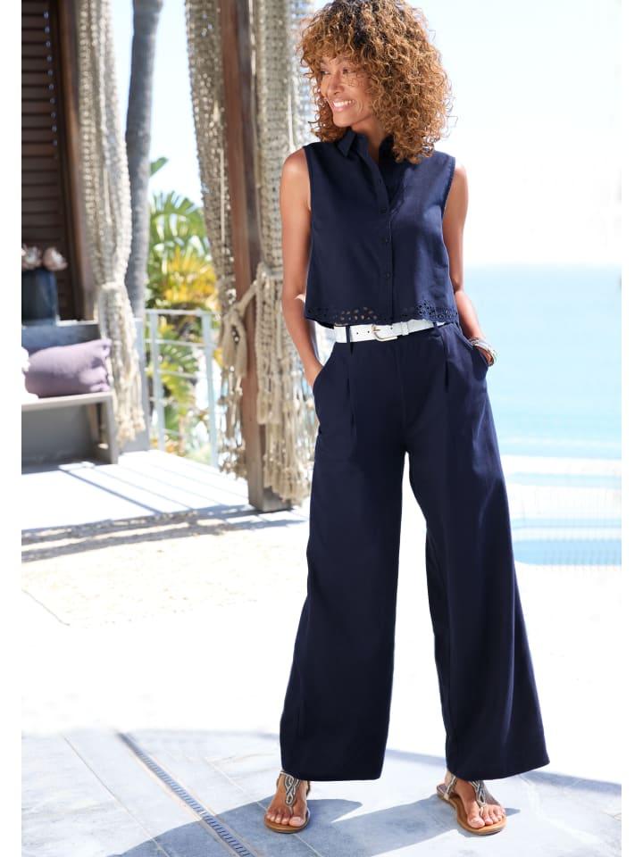 Широкие брюки от Lascana. Боковые карманы. Со шлевками. Эластичный пояс сзади. Легкий льняной материал.