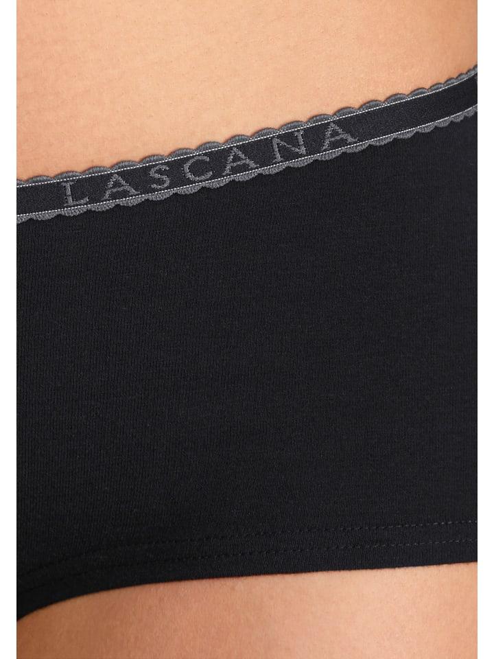Удобные трусики от Lascana в практичной упаковке 4 шт. Мягкий пояс с логотипом и контрастной отделкой из ракушек. Плоские манжеты на штанинах. Изготовлены из приятного эластичного хлопка.