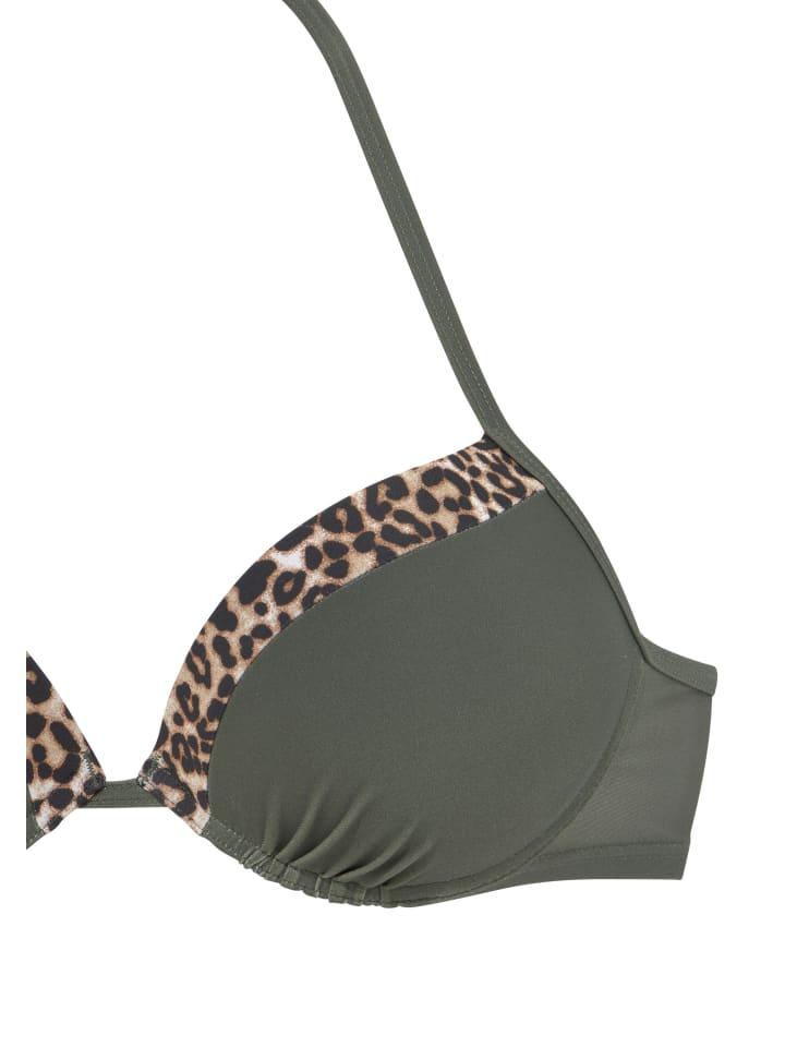 Топ пуш-ап от Lascana. С леопардовым принтом. Уплотненные чашечки со встроенным усилением. Завязывается на шее и застегивается на спине. Микс-кини. Удобный материал с добавлением переработанного полиамида.