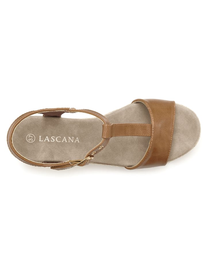 Босоножки на танкетке от Lascana. Высота каблука около 7,5 см. Верх и подкладка из искусственной кожи. Стелька из текстиля. Подошва из синтетического материала.