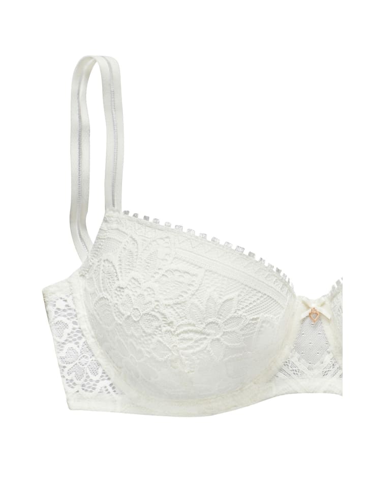 Красивый бюстгальтер на косточках с нежным декоративным бантиком и симпатичным сердечком по центру спереди. Изготовлен из цветочного жаккардового кружева и декоративной сетчатой ткани. Индивидуально регулируемые бретели и застежка на спине. Доступны соответствующие трусики из той же серии. С кружевом, которое содержит часть переработанного полиамида. Нижнее белье. Соблазнительное белье. Кружевное белье. Романтичное белье. Игристое белье. Изготовлен из 72% полиамида, 20% полиэстера, 8% эластана.