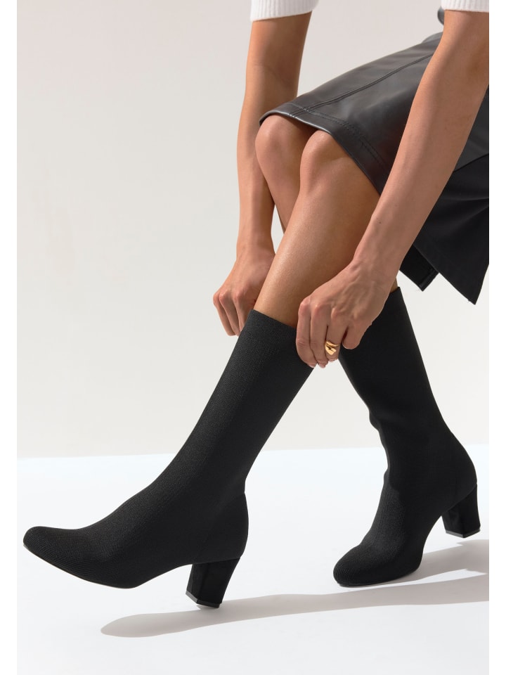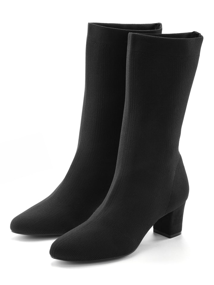 Ботильоны из эластичного материала от LASCANA. Высота каблука около 6 см. Верх и подкладка из текстиля. Стелька из искусственной кожи. Подошва из синтетического материала.
