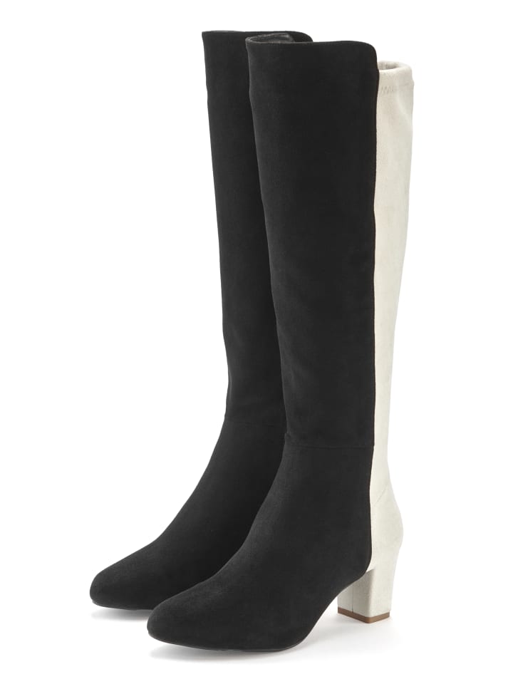 Двухцветные: высокие сапоги от Lascana. Удобный блочный каблук и молния для легкого надевания. Идеально подходят для отдыха и офиса, с множеством вариантов сочетания: с джинсами, платьями и юбками. Мягкая искусственная замша.