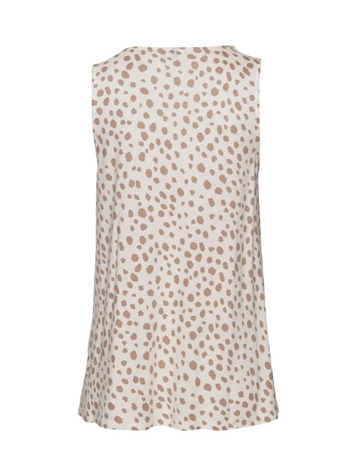 Топ от Lascana с модным принтом в горошек. V-образный вырез со складкой. Широкие бретели. Слегка расклешенный фасон. Мягкий, струящийся вискозный трикотаж.