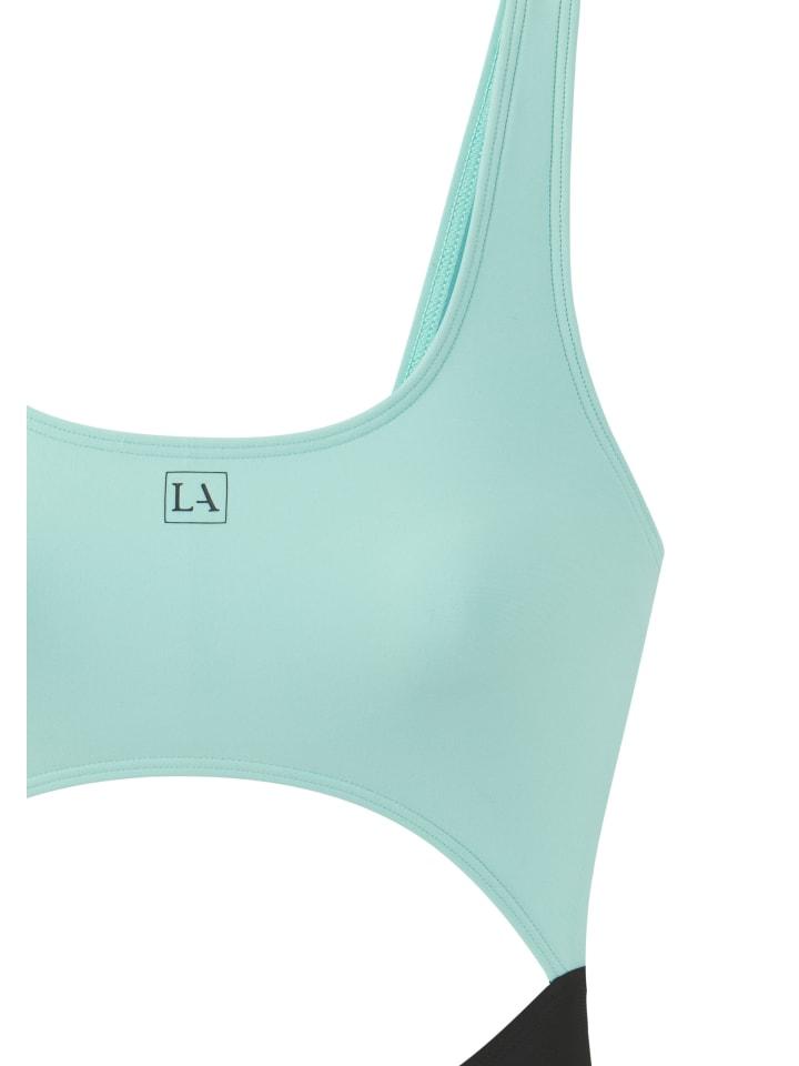 Купальник Lascana Active с цветными блоками. Большие вырезы спереди и сзади. Широкие бретели. Круглый вырез. Мягкие съемные чашечки. Материал содержит переработанный полиамид.