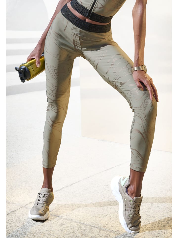 Женские спортивные леггинсы Lascana Active. С принтом в абстрактном стиле по всей поверхности. Рельефный принт на эластичном поясе. Комфортные, эластичные и дышащие.