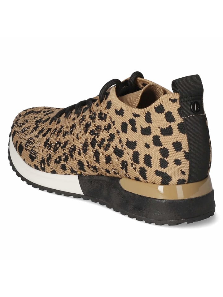 Эти коричневые низкие кроссовки La Strada из мягкого текстиля украшены модным анималистичным принтом, который добавит стильный штрих любому образу. Бежевые стразы добавляют блестящие акценты и подчеркивают модный образ. Классическая шнуровка обеспечивает идеальную посадку, а язычок для удобного надевания. Усиленная пятка обеспечивает дополнительную поддержку, а мягкая съемная стелька - высокий комфорт. Гибкая подошва обеспечивает комфорт и идеально подходит для повседневной носки или длительных прогулок. Эти кроссовки идеально сочетаются с узкими джинсами и свободным свитером для создания непринужденного повседневного образа или с брюками и блейзером для создания модного, но при этом удобного уличного стиля.