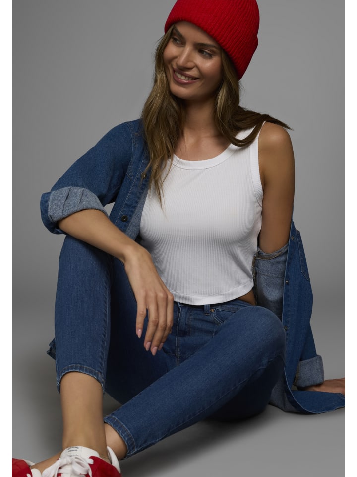 Универсальный женский укороченный топ от Laura Scott. Длина до талии, облегающий фигуру. Вырез горловины обработан окантовкой. Эластичный ребристая ткань позволяет топу адаптироваться к вашим движениям.