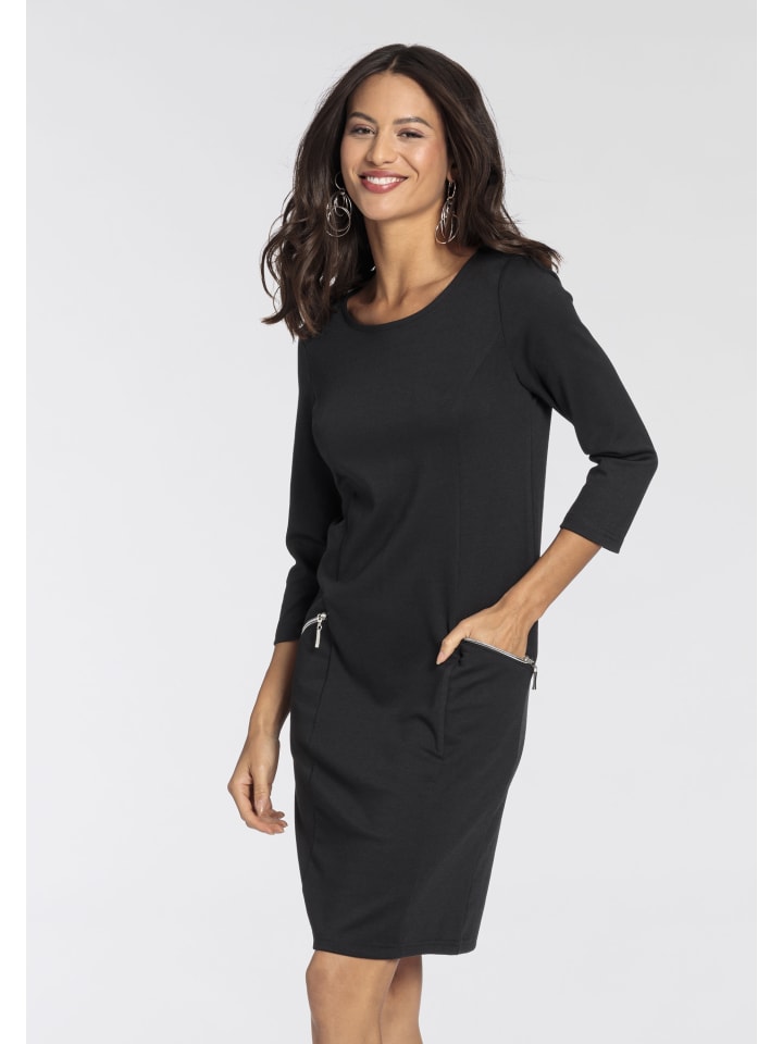 Элегантность или комфорт? В этом трикотажном платье от Laura Scott модницы найдут и то, и другое! Оно облегающее и короткое. Рукава длиной 3/4 заканчиваются манжетой. Благодаря эластичному ребристому шитью миланский рубчик платье сохраняет форму и не растягивается.