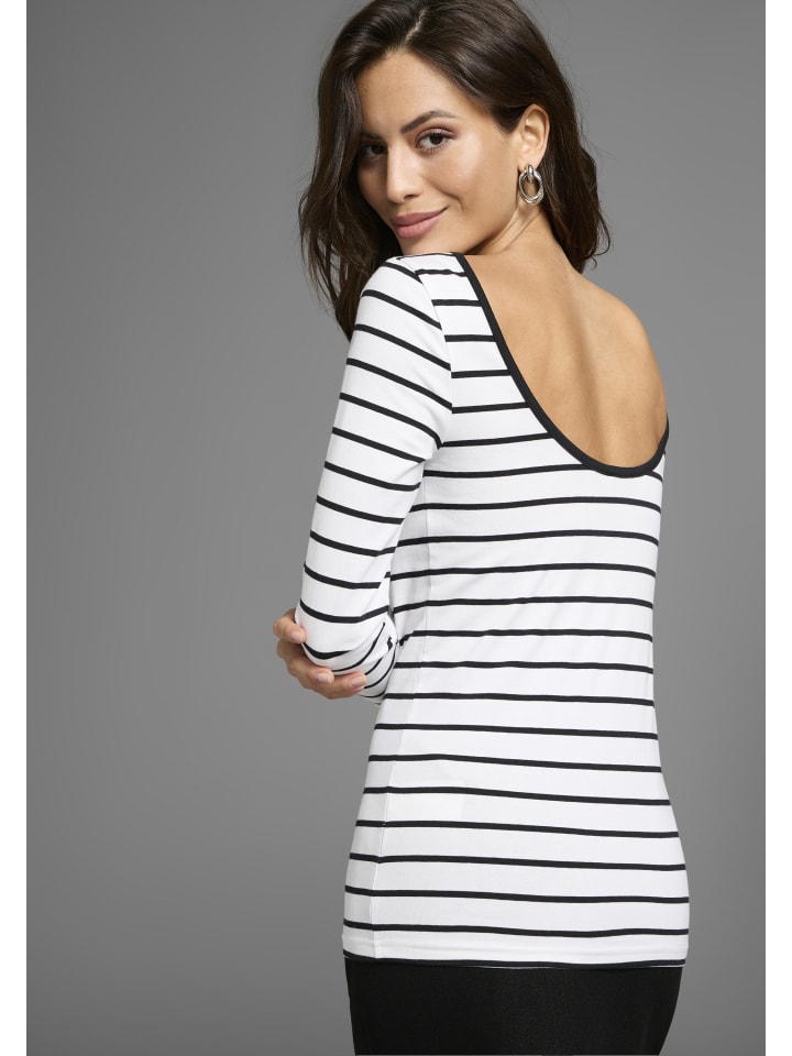 Женская рубашка с длинными рукавами от Laura Scott, которая легко комбинируется с другими вещами, с вырезом сзади. Облегающий крой до бедер дополнен модным и спортивным контрастным поясом. Верх из эластичного трикотажа отличается высоким уровнем комфорта.
