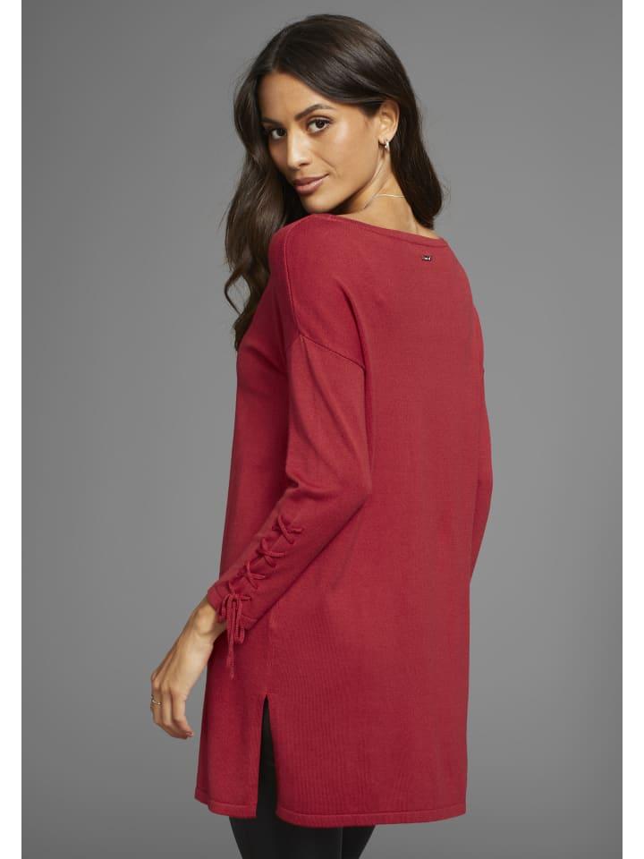 Универсальный длинный женский свитер от Laura Scott с привлекательной шнуровкой. Он прикрывает бедра и имеет свободный крой. Длина рукавов 3/4. Верх из эластичного трикотажа адаптируется к форме тела и движется вместе с каждым движением.