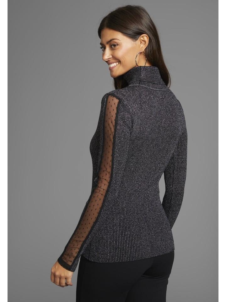 Женский свитер с высоким воротом от Laura Scott, который легко комбинировать с другими моделями, с сетчатой вставкой. Он облегает фигуру и прикрывает бедра. Длинные рукава. Благодаря высокой эластичности резинки, верх адаптируется к форме тела.