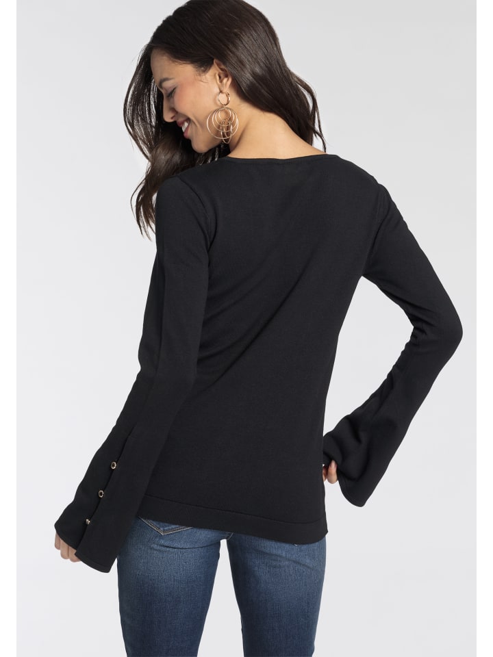 Женский свитер с круглым вырезом от Laura Scott, который легко комбинировать. Длина до бедер, облегающий крой. Длинные рукава-трубы. Украшен изысканными и современными декоративными пуговицами. Тонкий трикотажный верх согревает и обеспечивает высокий уровень комфорта.