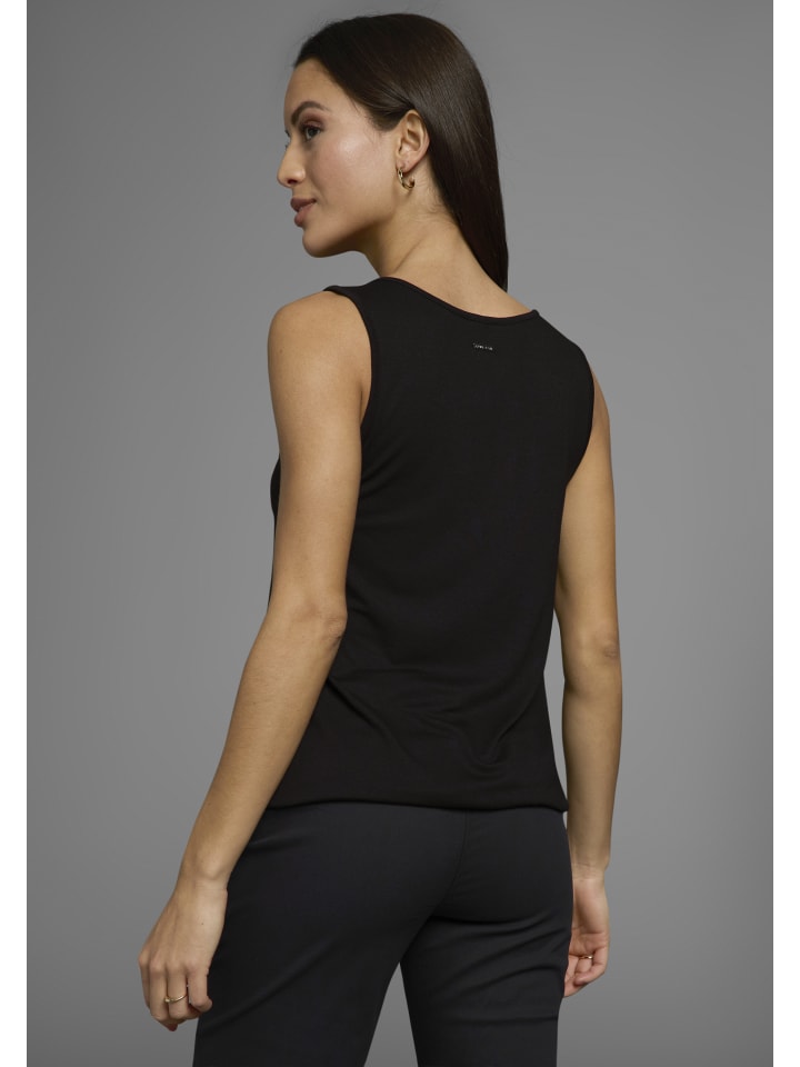 Женская майка от Laura Scott, которую легко комбинировать. Облегающий крой, закрывающий бедра. Украшена декоративной пряжкой в стиле рок-шик и дикий стиль. Топ удобен в носке благодаря мягкому трикотажу.