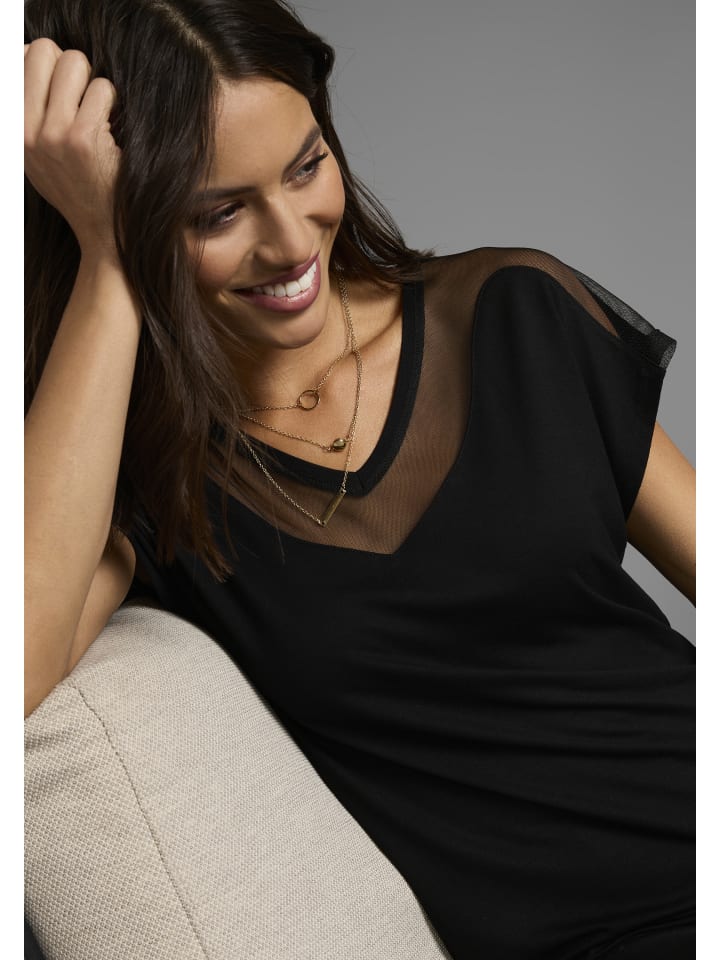 Женская футболка Laura Scott с сетчатой вставкой, которую легко комбинировать. Облегающий крой до бедер, с изысканной и модной сетчатой вставкой. Верх выполнен из гладкого трикотажа, обеспечивающего комфорт и свободу движений.