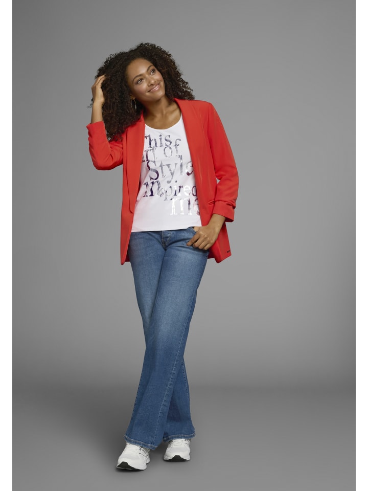 Женская футболка Laura Scott с принтованными акцентами, которую легко комбинировать. Длина до бедер и очень плотная посадка. Вырез горловины обработан окантовкой. Верх из эластичного трикотажа впечатляет своим высоким уровнем комфорта.