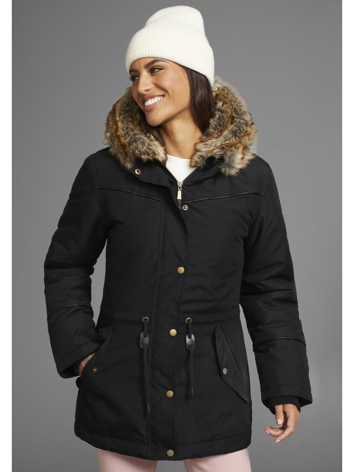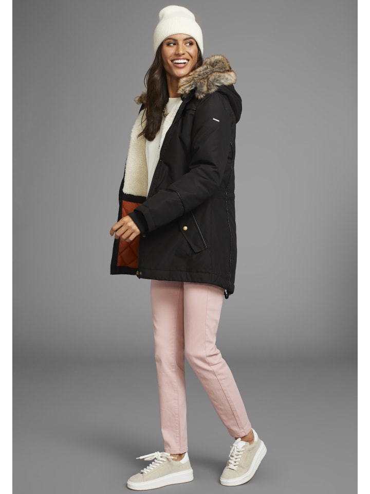 - С капюшоном и съемной искусственной опушкой: гибкая защита от ветра и непогоды