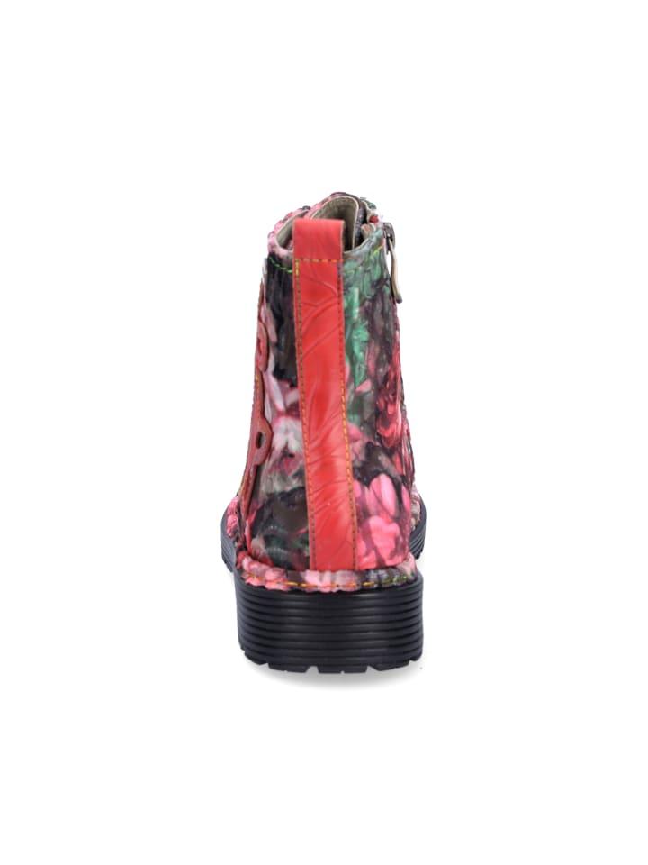 Женские ботинки Laura Vita на шнуровке из кожи и текстиля красного цвета с застежкой-молнией, шнуровкой, съемной стелькой Memo и прорезиненной подошвой.