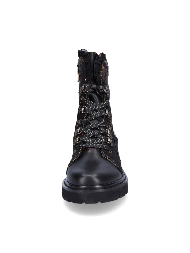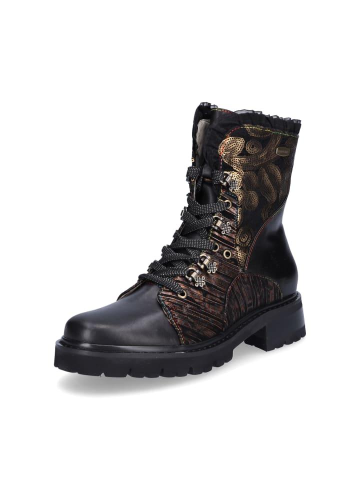 Женские ботинки Laura Vita на шнуровке из гладкой кожи и текстиля с металлическим декором, с кожаной стелькой и профилированной подошвой.