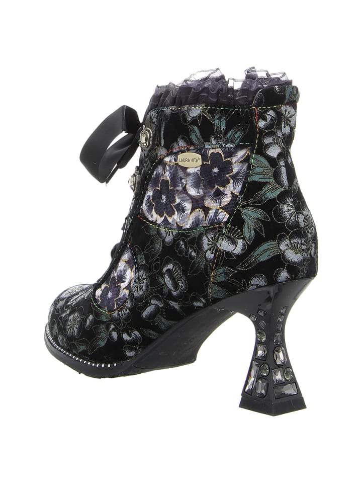 Черные ботильоны Oliveo 03 на шнуровке от Laura Vita - это волшебная обувь, искусно сочетающая элегантность и игривость. При ближайшем рассмотрении можно заметить множество очаровательных деталей, таких как цветные швы и великолепный блестящий цветочный принт. Экстравагантный воронкообразный каблук приподнимает линию бедра и придает элегантный вид. Удобная текстильная подкладка мягко облегает стопу. Боковая молния обеспечивает легкое надевание, а шнурки - надежную фиксацию. Не упустите возможность приобрести эти великолепные ботильоны на шнуровке от Laura Vita!