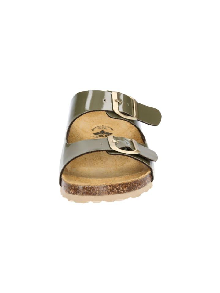 Шикарные мюли Bioline Platino оливково-золотистого цвета от Lico; верх из высококачественного синтетического материала; две регулируемые пряжки; удобная кожаная стелька; амортизирующая подошва из ЭВА; стелька из смеси пробки и резины.