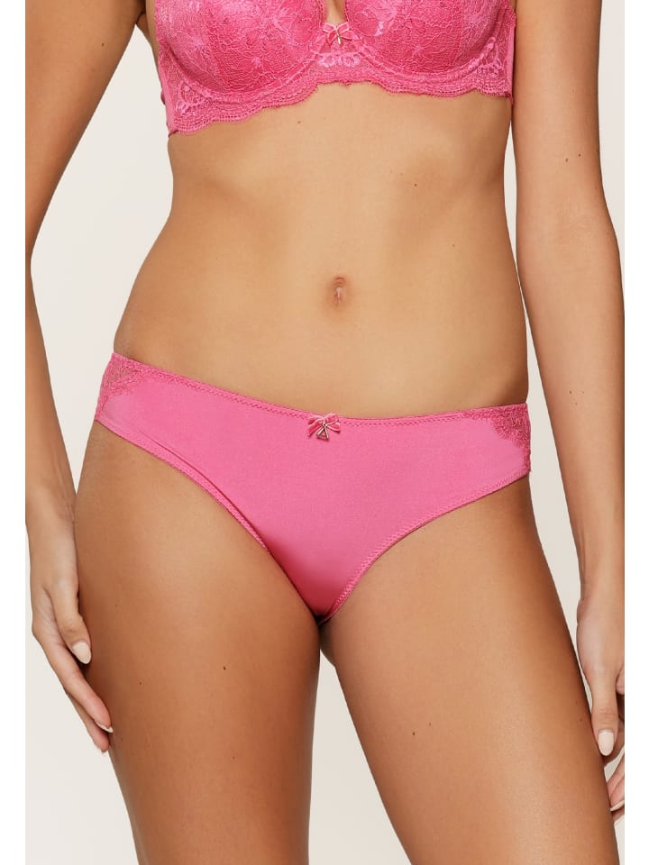 Розовая сенсация! Эти розовые трусики с непрозрачной передней частью и красивой кружевной отделкой сзади создают женственный образ. Бантик спереди придает трусикам игривый вид. Хлопковая ластовица обеспечивает комфорт.