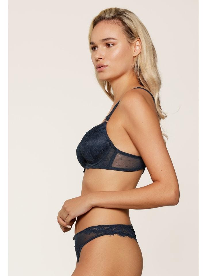 Искрящийся синий! Этот кружевной бюстгальтер пуш-ап с тонкими гелевыми вставками создает красивое декольте. Кружевные бретельки и нежные блестки на ткани создают изысканный образ. Стильная подвеска между чашками придает бюстгальтеру элегантный вид.