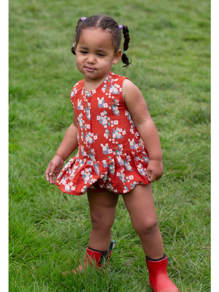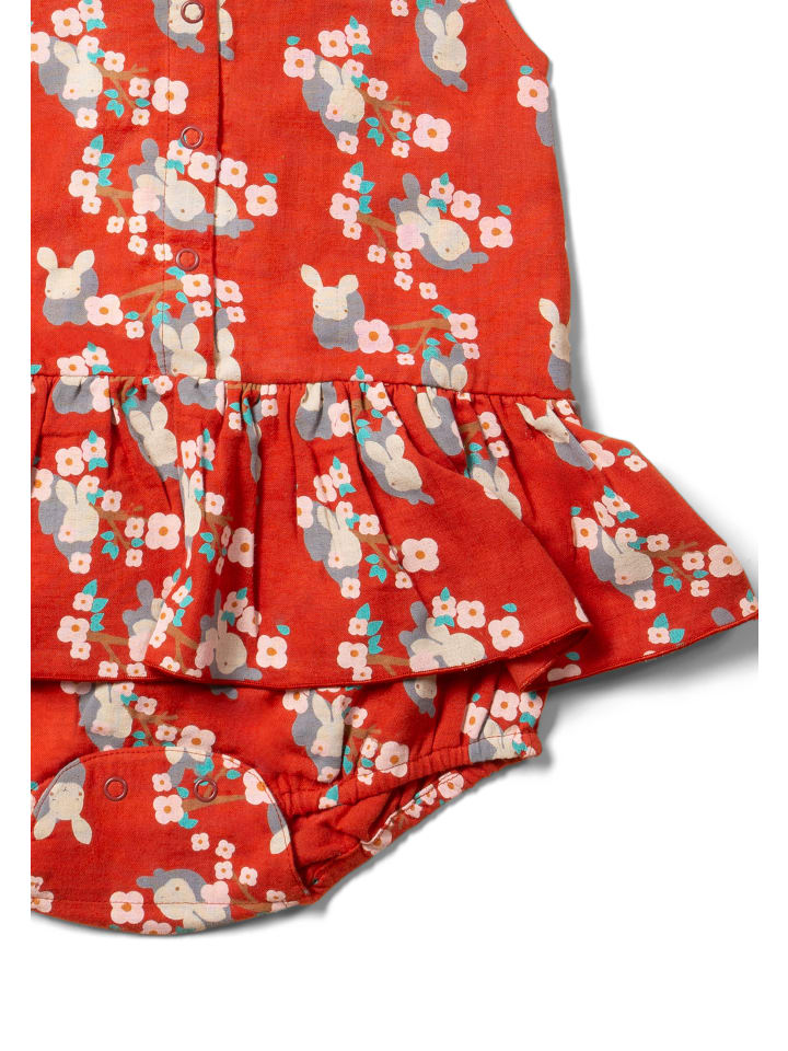 Удобный комбинезон все в одном с оборкой на юбке из дышащего органического хлопка для теплых летних дней.
