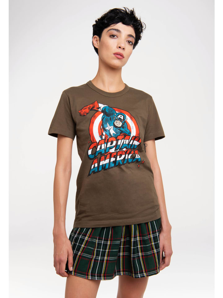 Яркая футболка с принтом Marvel - Captain America от Logoshirt с изображением супергероя Капитана Америки - неотъемлемая часть гардероба каждого фаната. Футболка прямого кроя с короткими рукавами отличается универсальностью. Благодаря высококачественному и прочному трафаретному принту в ретро-стиле, она станет стильным и ярким акцентом. Принт имеет винтажный дизайн и эффект потертости. Благодаря предварительной усадке футболка Easy Fit сохраняет форму даже после нескольких стирок. Чистый высококачественный хлопок обеспечивает комфортную посадку. Бренд Logoshirt - это лицензионный и аутентичный оригинальный дизайн.