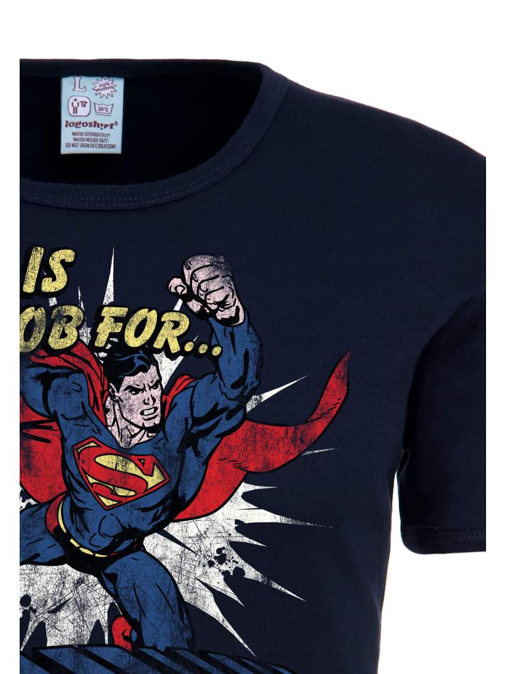 Футболка Супермен темно-синего цвета от Logoshirt украшена винтажным принтом всемирно известного супергероя Супермена. Эта футболка - настоящий маст-хэв для поклонников Супермена. Она имеет приталенный крой. Благодаря предварительной усадке, приталенный крой сохраняет форму даже после многочисленных стирок. Футболка с высококачественным трафаретным принтом изготовлена из 100% хлопка. Это материал исключительно высокого качества (230 г/м²). Бренд Logoshirt - это аутентичный дизайн, высокое качество и оригинальность. Используются только оригинальные дизайны.