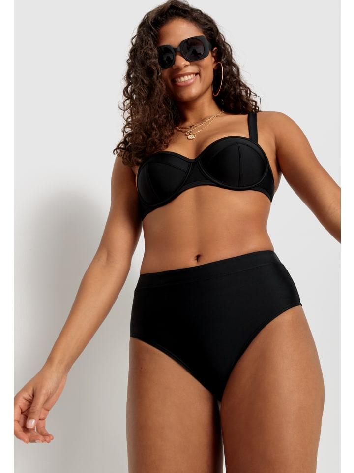 Универсальные плавки-бикини от LSCN by Lascana в модном однотонном цвете. Высокая талия с очень широкими боковыми вставками. Эластичный материал с добавлением переработанного полиамида.