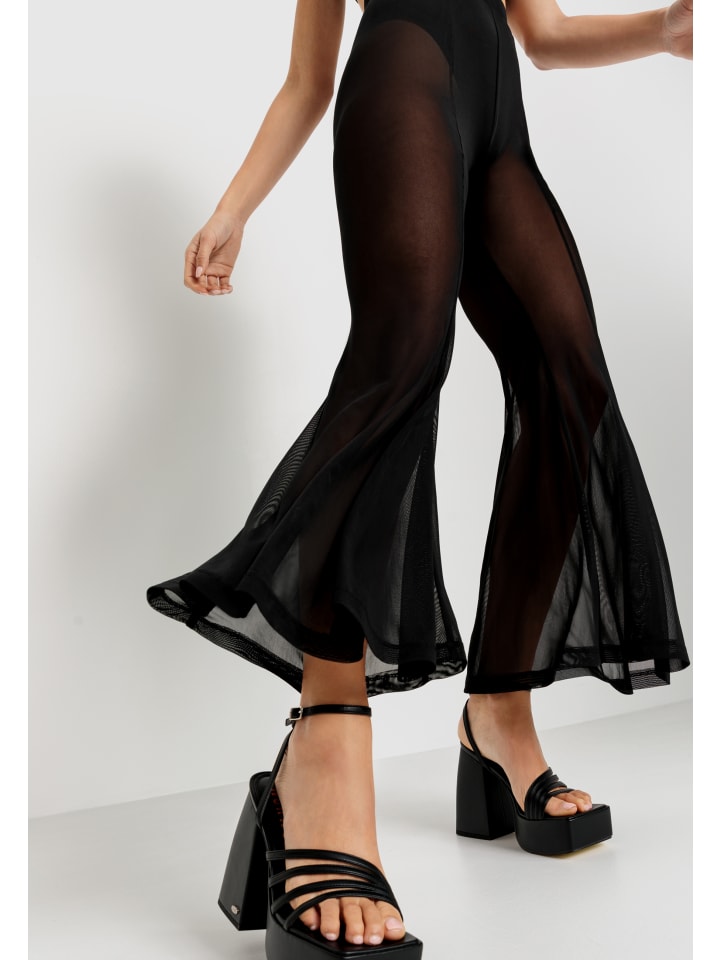 Сетчатые брюки от LSCN by LASCANA. Удобный эластичный пояс. Модный расклешенный крой. Облегающий крой. Длина до щиколотки. Изготовлены из эластичной сетчатой ткани.
