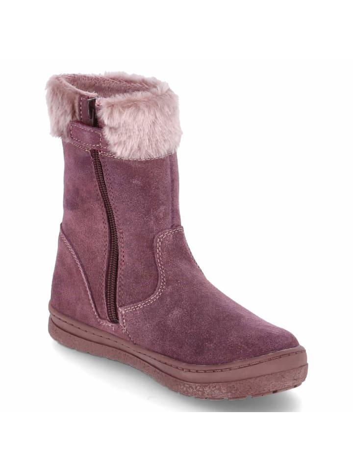 Ботильоны/зимние ботинки Lurchi для девочек VESNA из фиолетовой кожи и текстиля - водонепроницаемые, дышащие - блестящая звезда на голенище - застежка-молния - теплая флисовая подкладка - воротник из розового искусственного меха - усиленная область пятки - декоративные швы - гибкая, прошитая и нескользящая чашечковая подошва
