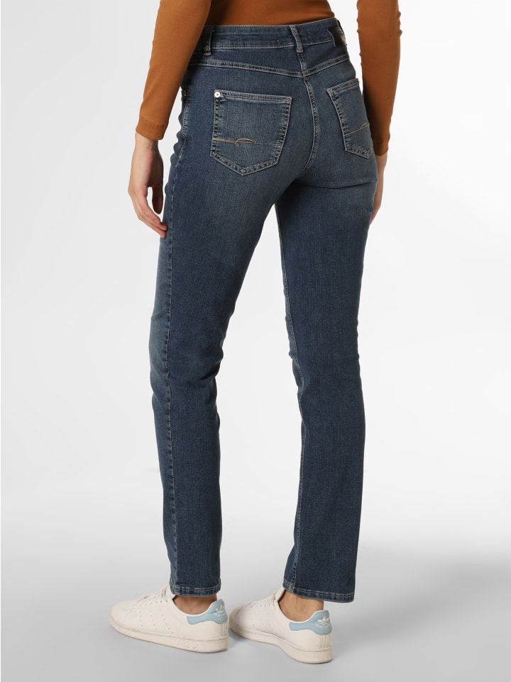 Визуально джинсы Melanie от MAC характеризуются классическим 5-карманным фасоном, а также завышенной талией и прямыми брючинами.