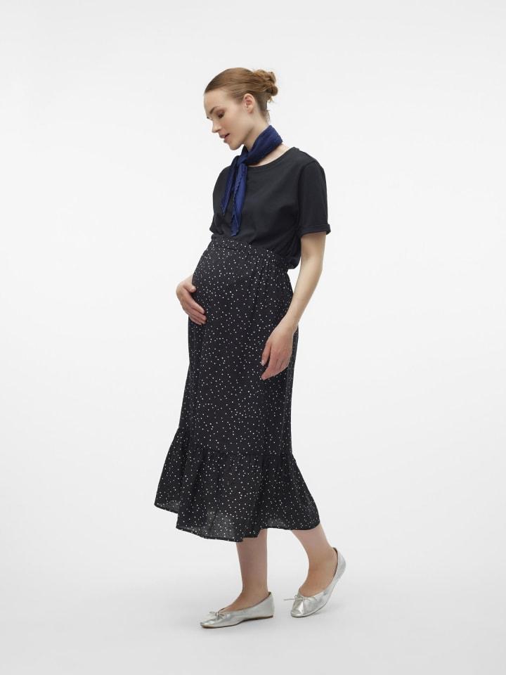Сочетайте любимые топы и блузки с стильной юбкой, которая идеально облегает ваш растущий живот, создавая удобный и воздушный образ, который всегда будет сидеть по фигуре.
