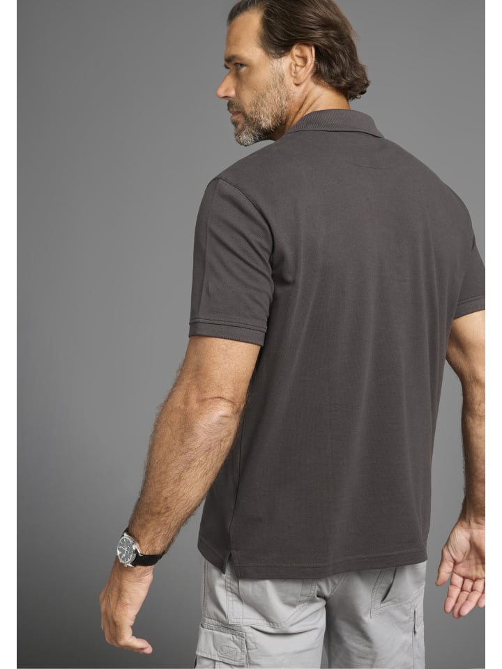 Универсальная мужская рубашка-поло от Man's World. Имеет классический крой и изящные боковые разрезы. Короткие рукава. Застегивается на пуговицы. Верх выполнен из влагоотводящей ткани пике.