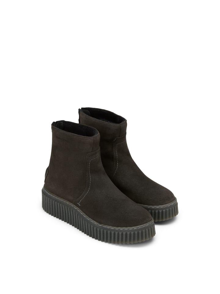 Мягкая замша, лаконичный вид: короткие сапоги Bianca сочетают в себе минималистичный дизайн и функциональные детали. Молния сзади позволяет легко надевать их, а пушистая, теплая подкладка из дышащей микрофибры обеспечивает надежное тепло. Стелька из переработанной микрофибры с эффектом памяти обеспечивает комфортную носку. Легкая платформа из трикотажного полотна с рифленой боковой частью. Сделано в Португалии.