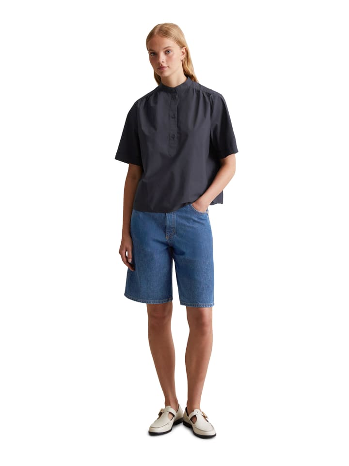 Блузки снова играют важную роль в мире моды в теплые месяцы. Они воздушны, свободны и легки, но при этом любой наряд выглядят элегантнее и наряднее футболки. Этот современный крой от Marc O'Polo DENIM отличается узким воротником-стойкой, планкой на полпуговицы в стиле поло, короткими рукавами с фиксированными отворотами, сборками на плечах и спинке и классическим отстроченным краем. Качество: высококачественный поплин, приятная на ощупь, из чистого сертифицированного хлопка. Идеально сочетается с юбкой в тон: в сочетании с юбкой в тон создает шикарный ансамбль, который на первый взгляд выглядит как платье.