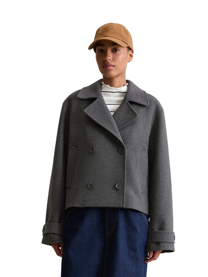 Переходные сезоны всегда ставят перед нами новые модные вызовы. Зимние куртки на подкладке и утепленные слишком теплые, кожаные и джинсовые куртки слишком холодные. Да здравствует бушлат от Marc O'Polo DENIM! Он сочетает в себе изысканность и функциональность и зарекомендовал себя как элегантный аксессуар. Высокое содержание шерсти придает ему изысканный вид и обеспечивает долгий срок службы. Классический двубортный пиджак с широкими лацканами, пуговицами в тон, спущенной линией плеча, длинными рукавами с застежками на пуговицах и практичными прорезными карманами. Куртка свободного кроя полностью на подкладке. Что касается стиля, он отлично сочетается с повседневным образом со свитером и джинсами или стильно с юбкой и блузкой.