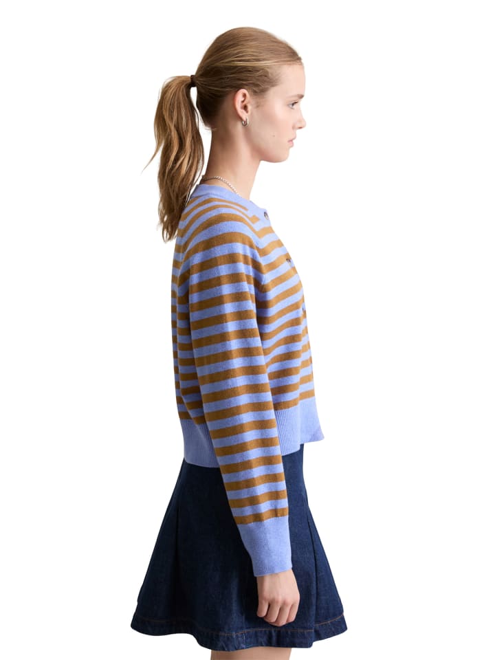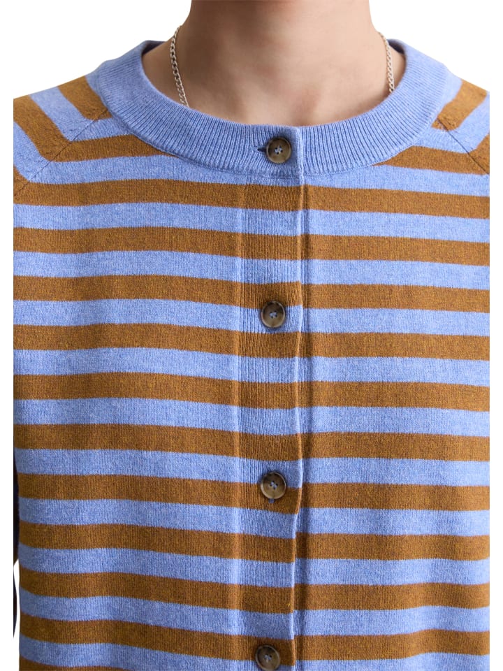 Этот модный предмет гардероба должен быть в каждом гардеробе. Он является частью базового капсульного гардероба и всегда выручает, когда кажется, что нечего надеть. Кардиган в полоску от Marc O'Polo DENIM связан из тонкой, мягкой, высококачественной хлопковой эластичной пряжи и имеет мягкий, гладкий узор. Свободный крой с круглым вырезом, рукавами реглан и ребристыми манжетами и нижним краем. Особенность: полностью прошитые детали на швах рукавов, не требующие обрезки и, следовательно, экономящие расход пряжи, связаны по форме. Совет по стилю: сочетайте с подходящим базовым свитером, чтобы создать элегантный комплект-двойку.