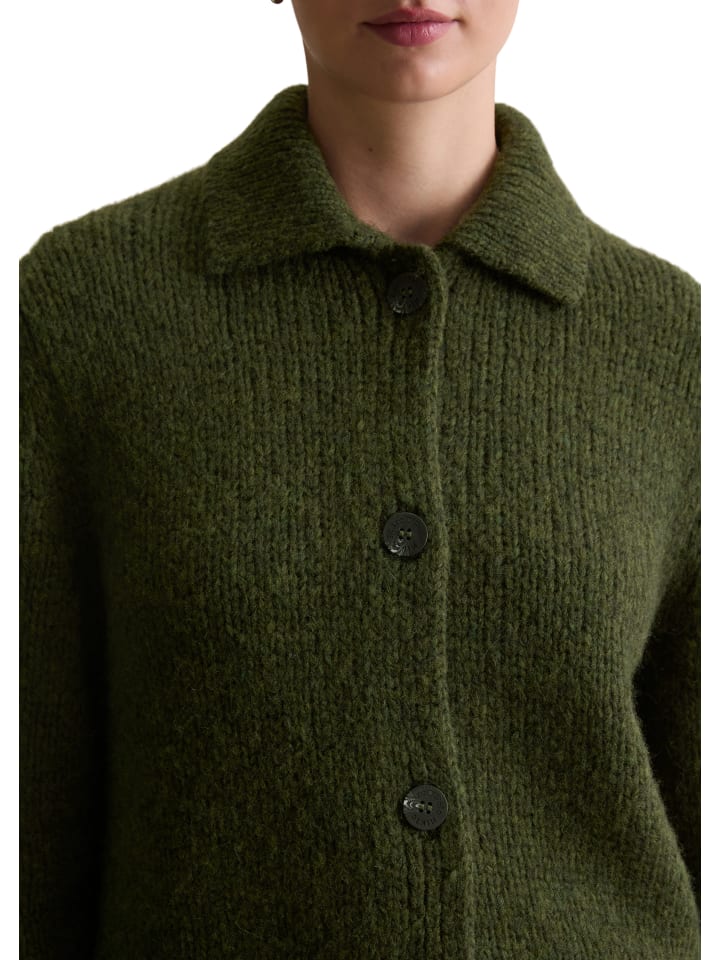 Современный ключевой элемент с непринужденным ретро-вдохновением 80-х: стильный объемный кардиган Marc O'Polo DENIM с непринужденным воротником-поло и массивными пуговицами с роговым эффектом. Плотная вязка, гладкий фасон из высококачественной смеси натуральной шерсти с большим содержанием эксклюзивной, супермягкой шерсти альпаки. Крой: классический, прямой, до талии, с широкими манжетами. Совет по стилю: носите застегнутым как альтернативу свитеру.