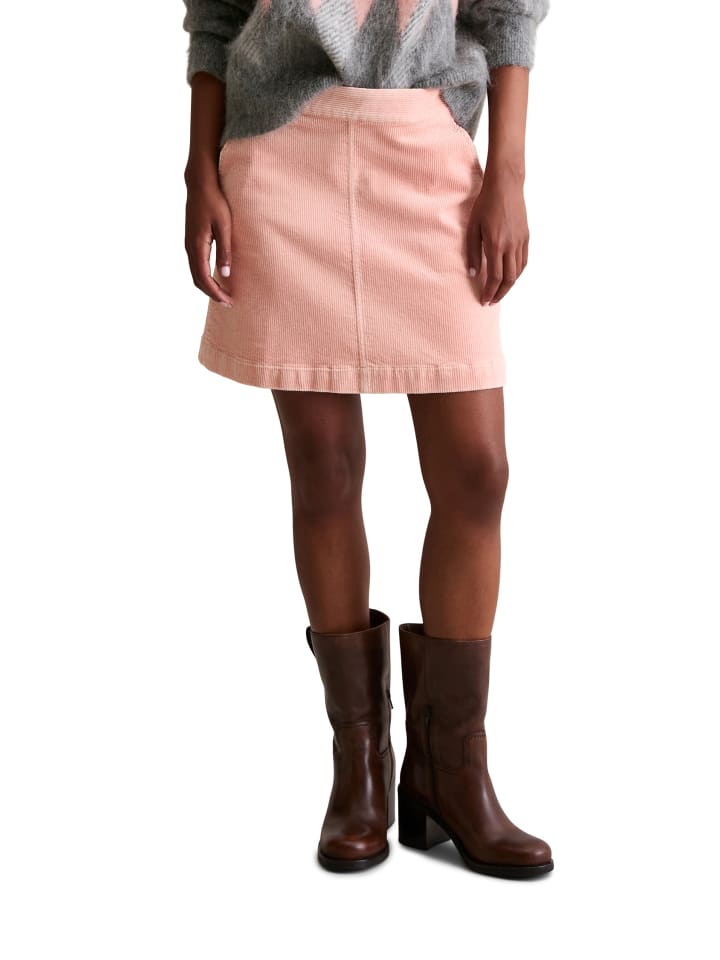 Эта короткая, слегка расклешенная мини-юбка из вельвета, напоминающая о бурных 70-х, получила качественное обновление дизайна. Она сшита из удобной, эластичной смеси органического хлопка и без подкладки. Она имеет четкий пояс, вытачки, практичные косые карманы и молнию по центру сзади. Вельвет на подходе! Лучше всего покупать в паре. Сочетание этой короткой юбки с подходящей блузкой создаст ностальгический модный момент.